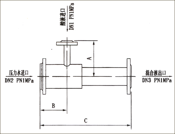喷射器是依靠高压液体(一般为水),经喷咀形成的高速流所产生的负压来吸入并喷射另一种低压流的设备,同时具有混合作用,在水处理中,衬里喷射器用来稀释和输送盐酸再生液。